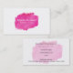 Modèle de carte de visite avec un design mignon girly à l'aide d'une plaque de peinture d'aquarelle rose vif. L'exemple ici utilise la profession : le maquilleur comme exemple. Design design féminin pour les entreprises et les professions avec une clientèle féminine.
