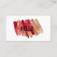 Carte de visite à éclaboussure d'aquarelle rouge et or peint à la main. Style moderne propre adapté à plusieurs professions, y compris les artistes, musiciens, écrivains, consultants et plus. Le message sur le devant dit "Bonjour" et peut être facilement customisé.