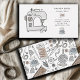 Ce simple couturier carte de visite dispose d'outils d'aquarelle fantaisie du commerce en bruns et gris terre, avec une machine à coudre et d'autres articles, et un collage d'outils couturiers au dos de la carte.