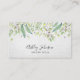 Magnifique carte de visite moderne, avec son nom d'entreprise ou son titre dans une combinaison décontractée et chic d'écriture manuscrite et de typographie sans serif, dressée contre un arrière - plan en papier d'art blanc, et surmontée d'un design verdoyant en feuille d'aquarelle. L'arrière de la carte contient vos coordonnées et un arrière - plan vert coordonné. Les détails ont été soigneusement définis pour être facile à l'oeil, et permettent aux clients de trouver facilement l'information dont ils ont besoin rapidement.