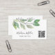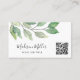 Cette carte de visite moderne et verdoyante conviendra parfaitement à un petit chef d'entreprise, un consultant, un styliste et plus encore. Le design botanique présente des feuilles d'aquarelle dans les tons verts et stylisés typographie. Facilement personnalisable avec vos détails et code QR. Utilisez l'outil de conception pour modifier la taille, le style ou la couleur du texte. Aquarelle originale © Michele Davies.