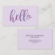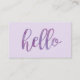 Joli et élégant carte de visite avec une aquarelle simple et tendance design typographie de bonjour dans un design violet sur un arrière - plan lavande. Modifiez la couleur arrière - plan et la couleur du texte à l'arrière pour un look personnalisé. Conçu avec des coiffeurs, des cosmétologistes, des maquilleurs et d'autres professionnels créatifs en tête.