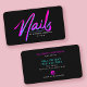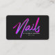 Ce carte de visite utilise le mot "Nails" dans une police de script élégante en rose néon contre un arrière - plan noir. Parfait pour les artistes ongles. Vous pouvez modifier le texte ou l'arrière - plan en n'importe quelle couleur.