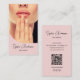 Faites une impression durable avec ce Carte de visite d'artiste moderne à ongles rose. Il offre de l'espace pour votre photo personnalisée, une typographie de script élégante, un code QR pour la réservation ou le portefeuille, et des icônes de médias sociaux remplaçables pour correspondre à votre marque. Parfait pour créer un look chic et professionnel dont les clients se souviendront ! Entièrement personnalisable et idéal pour les techs à ongles, coiffeurs, maquilleurs et professionnels de la beauté.