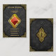 As d'or de conception de carte de visite de diamants, avec le cadre ornemental floral d'or et les rayures vintages sales à l'arrière-plan.
