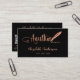 Un élégant carte de visite sur un arrière - plan noir et un stylo en plumes d'or rose. Élégant script de style écrit à la main. Personnalisez et ajoutez Votre nom, titre, coordonnées et votre propre code QR à votre adresse de site Web.