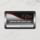 Série métallique : Un grand modèle de carte de visite pour le commerce de moteur/automobile avec un logo automatique classique. La conception globale ressemble à un piston et l'arrière - plan emploie un métallique-effet poli avec le bruissement de rouge et de noir. Customisez avec vos détails et donnez une ligne de courroie, une citation ou un message personnel pour cette sensation vraiment professionnelle.
