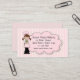 Carte de visite pour des boulangeries, boulangers, biscuits. Boulanger mignon de fille de caractéristiques de conception tenant le petit gâteau. L'avant a l'étiquette élégante pour le texte et le rose et l'arrière - plan barré par crème. Créé avec l'illustration par ©Trina Clark