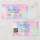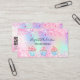 A rose, purple, mint green holographic background. Decorated with blush pink faux glitter dust and cupcakes. Personalize and add your name and text on front. back: Templates for Your name, title, phone number, mail and site web address, your own code to your site internet or social media account.