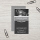 Modèle de carte de visite avec un design attrayant à bandes verticales dans les tons gris et blanc avec une zone de texture d'image décorative en haut. Nom de l'entreprise et type d'entreprise sur la bande principale avec le nom, le titre et d'autres adresses et coordonnées ci-dessous, Le côté arrière de la carte a été laissé en blanc avec une couleur plate gris moyen. Cela peut être laissé en blanc ou customisé.