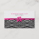 Elégant motif zèbre noir et blanc avec arc rose et stud diamant (image de diamant), modèle de carte de visite entièrement personnalisable.