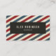 Un design vintage à la mode pour un barbier un motif classique de rayures rouges et bleues sur un arrière - plan crème. Au milieu, il y a une boîte noire avec pour nom et profession, ou un nom d'entreprise et un slogan. À l'arrière, le design est répété avec plus d'espace pour vos détails. Ce serait parfait pour n'importe quel barbier ou barbier, un barbier ou un coiffeur indépendant.