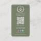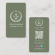Avocat Professionnel Justice Scale Logo Sage Green Qr Code Se connecter avec des clients en toute transparence avec un carte de visite professionnel. Vous y trouverez votre nom, vos coordonnées, un logo classique de l'échelle de justice et un code QR scannable menant à votre site Web ou profil.