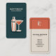Un carte de visite vintage pour un barman, un pub, un mixologiste, un gardien de soirée. Elle est accompagnée d'une illustration d'un shaker à cocktails et d'un verre à martini aux couleurs rétro.