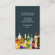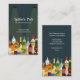Un assortiment de boissons alcoolisées et de bouteilles sont disposés au fond de ce carte de visite contre un arrière - plan turquoise foncé avec deux feux pendentifs qui s'éclairent. Idéal pour un pub, un bar-grill, un magasin d'alcool, un grossiste en alcool ou un barman. Disponible avec des produits correspondants.