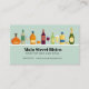 De nombreuses bouteilles d'alcool et de boissons sont disposées sur un comptoir dans un style rétro et illustratif sur ce carte de visite. Utilisez pour un bar, un pub, un restaurant, un bistrot, un magasin d'alcool, un détaillant d'alcool ou un grossiste, ou toute autre entreprise. Disponible avec les articles correspondants.