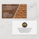 La couverture est composée d'une couche de bois brun et d'un mur en brique. En haut se trouve le nom de l'entreprise, ses coordonnées ainsi que votre nom prestigieux et le titre de votre emploi près de la base de la carte. En surplomb, dans une couverture blanche, un logo doré domine que vous pouvez utiliser est en haut. Il est suivi par votre nom prestigieux, les coordonnées et un slogan-slogan que vous pouvez changer. Une grande carte pour les maçonneries, les bricoleurs et les entreprises de construction. #construction #entrepreneur #construction à domicile #bricyman #homerepair #constructeur de maison #entrepreneur de construction #entrepreneur de construction #remodelage #brick #zazzlemade