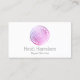 Un cercle peint à la main dans les tons rose et violet avec une gravure de mandala blanc devient un logo unique sur ces cartes de visite modernes. Ce design a été créé pour les salons de beauté, les entreprises de soins de la peau, les boutiques, les massothérapeutes et plus encore. Cette carte de visite double face dispose d'une grande place à l'arrière pour vos coordonnées. Art et design © 1201AM Design Studio | www.1201am.com
