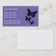 Modèle de carte de visite à thème papillon nature conçu avec trois beaux papillons colorés dans l'arrière - plan et disposition simple qui peut être customisé à votre façon. Créé pour une entreprise artisanale, le thème de la nature, les cartes de contact maman ou les services de baby-sitter.
