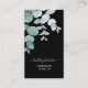 Ce carte de visite de bijoux unique est décoré de feuilles d'eucalyptus aquarelle sur un arrière - plan noir avec typographie stylisée. Facile à personnaliser. Utilisez l'outil de conception pour modifier la taille, le style ou la couleur du texte. Aquarelle originale © Michele Davies.