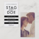 Classic stripe design stag et doe ticket avec beaucoup d'espace pour les détails de l'événement ainsi qu'une photo au verso (en option). Blanc avec rayures noires.