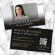Photo professionnelle QR Code Société Carte de visite horizontal. Ce carte de visite horizontal simple et élégant est parfait pour les marques d'entreprise, les petites entreprises, les consultants, les pigistes ou tout professionnel à la recherche d'une esthétique moderne et élégante. L'avant présente votre photo, nom, titre ou nom d'entreprise sur un dégradé noir en bas, avec des polices or et blanc pour un contraste chic. Au dos, un solide arrière - plan noir est accentué de polices et de détails dorés et blancs, avec vos coordonnées à gauche et le code QR et les icônes optionnelles des médias sociaux placées en bas à droite. La typographie est un mélange raffiné de calligraphie manuscrite et une police serif classique, donnant au design un look professionnel mais élégant. Entièrement personnalisable, vous pouvez ajuster les polices, les couleurs et la disposition en fonction de votre marque.