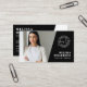 This sleek and simple business card uses white serif typography against a solid black background for a classic, elegant feel with a modern twist. The front highlights your photo, company logo, name, and title or business name in a polished layout that stays clear and professional. The back includes your contact information, a scannable QR code, and minimalist social media icons with the phrase “Connect with us!” for easy engagement. The high-contrast black and white style can be customized to fit any brand, making it a timeless choice for corporate teams, small businesses, freelancers, and consultants. Personalize yours to create a refined and stylish first impression.