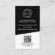 On the back, the top section stays white with black text for your contact details, QR code, and social icons, while the bottom portion shifts to a solid black background with white fonts and details for a striking, modern contrast.