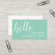 carte de visite simple à un côté en vert menthe et blanc avec bonjour écrit dans un élégant script de calligraphie.
