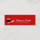 Le graphique simple et futé a conçu les cartes de visite maigres minces dans un blanc rouge et contrastant chaud lumineux avec une industrie graphique simple de sushi des bâtons de côtelette et a enveloppé des sushi. Idéal pour des chefs de sushi ou de petits restaurants ou des entreprises de sushi. Customisez avec votre propre numéro d'adresse, de nom, de site Web et de téléphone. Conception et illustration par Sarah Trett.