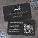 Disposez-vous de cette élégante conception minimaliste en noir et blanc avec une simple silhouette de ciseaux pour personnaliser avec votre nom, les médias sociaux, le code qr et le texte.