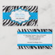 La copie de zèbre fait un arrière - plan saisissant d'un cadre fleuri sur un ruban bleu lumineux de point de polka sur ce carte de visite de attention-obtention. Une raison sociale et un contact principal est présentée dans le cadre entouré par les ornements bouclés. L'inverse indique toute l'information de contact entre deux panneaux d'impression de zèbre accentués avec les rubans polka-pointillés par bleu. Disponible dans des couleurs alternatives avec les produits assortis.