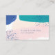 Ces cartes de visite audacieux et branchés présentent des traits d'aquarelle abstraits rose, turquoise et bleu, avec des accents bleus et du texte modernes.