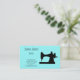Un grand carte de visite pour un tailleur ou un spécialiste de couture. Il a une silhouette d'une machine à coudre de l'aile gauche sur un arrière - plan bleu vert. Vous customisez le texte sur l'avant et le dos.