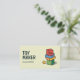 Un carte de visite avec un arrière - plan jaune pastel doux pour un fabricant de jouets ou un magasin de jouets avec une pile de blocs de jouets en bois aux couleurs vives dans une atmosphère dessinée à la main. Les blocs sont disposés dans une tour fantaisie avec un bloc rouge placé sur le dessus, affichant un texte personnalisable, et une étoile unique stylisée se trouve près du coin inférieur. Il pourrait être utilisé par une fabrication artisanale de jouets en bois, construction ou jeux éducatifs, etc.