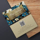 Carte De Visite Blue Gold Floral Foil QR Code Luxe
