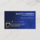 Au-dessus, dans une couverture bleu foncé, le logo or est en haut, suivi de votre nom prestigieux, des coordonnées et d'une légende de slogan pour faire connaître vos services.
