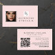 Carte De Visite Blush Pink Script Logo QR Code Photo Lashes