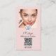 Carte De Visite Blush Pink Script Logo QR Code Photo Makeup