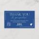 Un ordre d'affaires cool bleu boho vous remercie. Ajoutez vos médias sociaux. Avec une police de script de signature moderne, toutes les couleurs sont modifiables, ajoutez votre logo avec des bordures de lignes géométriques.