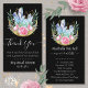 Boho Moon Crystal Cluster avec des fleurs roses roses roses et Cartes de visite de design de lune de croissant d'or. Parfait pour Massage Reiki Yoga Clinique et spa. Texte prêt pour vos informations. Carte de visite Merci pour les commandes client.