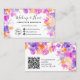 Purple Orange Boho fleurs de maquillage floral et de beauté des cheveux carte de visite avec la main peint jolies fleurs sauvages en violet, lavande, orange, pêche avec une typographie de script brossé sur un élégant éditable sur arrière - plan blanc. Ajoutez votre logo, votre média social et votre code qr pour rechercher la liste de prix et les instructions de soins.