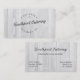 Divers types de polices sombres créent un logo accrocheur sur ce design carte de visite moderne. L'arrière - plan est une texture rustique et blanche de grain de bois.