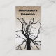 Ce carte de visite fait de la publicité pour le bois de chauffage à vendre. Il présente un motif artistique noir abstrait du sommet d'un tulipe en hiver avec des branches nues en silhouette sur un dégradé de métal brun et bronze. Un autre arbre est à l'arrière avec les informations commerciales pertinentes. Tout le texte peut être customisé pour convenir à votre entreprise.