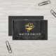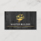 Une couverture en bois de bois est encapsulée par une fine ligne d'or près de la base de la carte. En haut se trouve un logo en or que vous pouvez utiliser. Le logo se compose d'une moelle à roue chargeant une maison avec un marteau et une brosse à rouleaux. Juste en dessous du logo se trouve le nom commercial avec une option de légende de slogan pour faire connaître vos services près de la base. Sur le dessus, dans une couverture gris foncé, un logo de marteau d'or que vous pouvez utiliser est suivi de votre nom prestigieux, des coordonnées et d'une légende de slogan pour faire connaître vos services. Une excellente couverture pour les thèmes de la menuiserie, du bâtiment et de la construction.