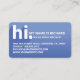Faites une bonne première impression et présentez-vous à des clients potentiels avec nos cartes de visite "salut mon nom est". Le design comporte "hi" dans un design typographique moderne avec une ombre de texte diagonale. Un élégant dégradé de bleu apporte une touche moderne et audacieuse. Personnalisez avec votre nom, votre titre et vos coordonnées. L'envers est conçu dans un style épuré minimal avec monogramme personnalisé et poignée de médias sociaux.