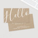 Bonjour | Professional Modern Script Kraft Carte de visite papier avec mot "bonjour" en blanc style de police de calligraphie moderne à l'avant et détails en moderne sans serif style de police à l'arrière. Parfait pour les maquilleurs, coiffeurs, concepteurs, blogueurs et beaucoup d'autres professions.