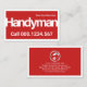 La couverture est composée d'un calque rouge encapsulé par un cadre blanc. Il affiche une pancarte "handyman" sur son visage. Dans le coin supérieur se trouve votre nom prestigieux avec les coordonnées de la base. Au-dessus, le même thème de conception est appliqué. Les détails de la carte sont au centre avec un logo de ruban à perceuse argentée que vous pouvez utiliser placé en haut. Après cela vient votre nom prestigieux, les coordonnées et une légende de slogan que vous pouvez changer. Une grande carte pour les bricoleurs, les constructeurs et les entreprises de construction.
