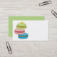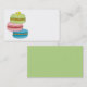 La main a illustré l'illustration de médias mélangés des macarons verts, roses et bleus, généralement désignés également sous le nom des macarons. Une petite fleur jaune de marguerite se repose sur le dessus. Pour ajouter le texte à votre carte de visite, cliquez sur dessus la personnaliser il. Une conception lunatique d'amusement pour une boulangerie ou un patisserie.