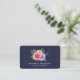 Cartes de visite avec un joli bouquet de roses aquarellés avec des sprigs, des feuilles et des branches, le tout dans un arrangement floral coloré. Arrière - plan bleu marine.